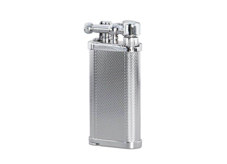 Das legendäre OLD BOY Feuerzeug. Mit Steinzündung und schräger Flamme. 3,3 g Gaskapazität. Mit inzegriertem Pfeifenstopfer und Dorn. OLD BOY CHROM BARLEY